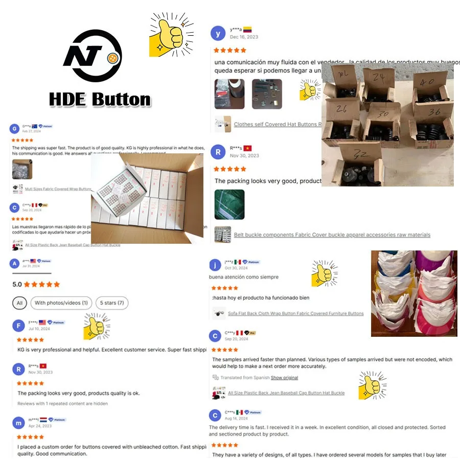 There are more than 50sets fabric cover machines, 40sets pressing hole machines and 30sets punching machine in the factory. We make the fabric cover buttons in high quality, each button pass excellent quality.